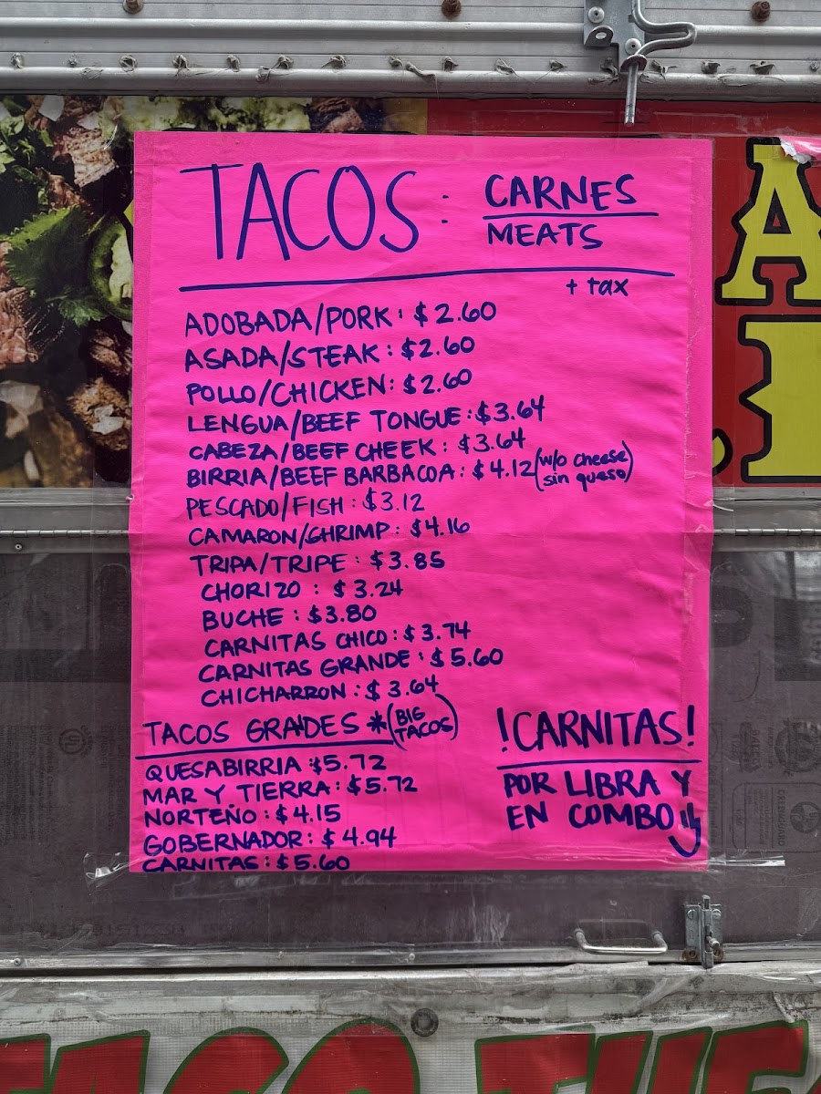 The Tortas are another highlight, with variations like the flavorful Torta De Al Pastor O Adobada (Marinated Pork Torta), Torta De Cabeza (Beef Cheek Torta), and the juicy Torta De Birria, featuring the rich, stewed meat. If you prefer something more familiar, the Torta De Jamón (Ham Torta) and the Torta Mixta (Mixed Torta) provide tasty alternatives.